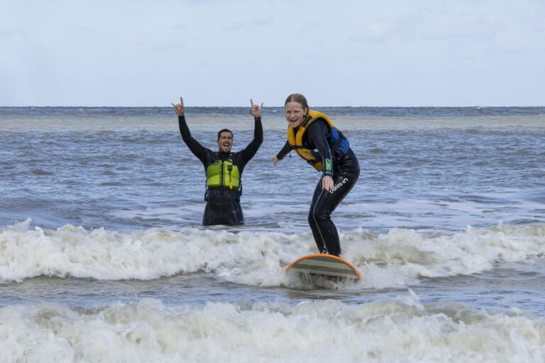 Outre le surf sur les vagues en tant qu’activité de groupe, nous organisons des initiations au surf à des horaires fixes, auxquelles vous pouvez participer seul ou avec quelques amis. Aucune connaissance préalable ne sera nécessaire car nous commençons par les bases. Toutes les informations et les prix se trouvent sur la page des initiations de surf individuelles.
